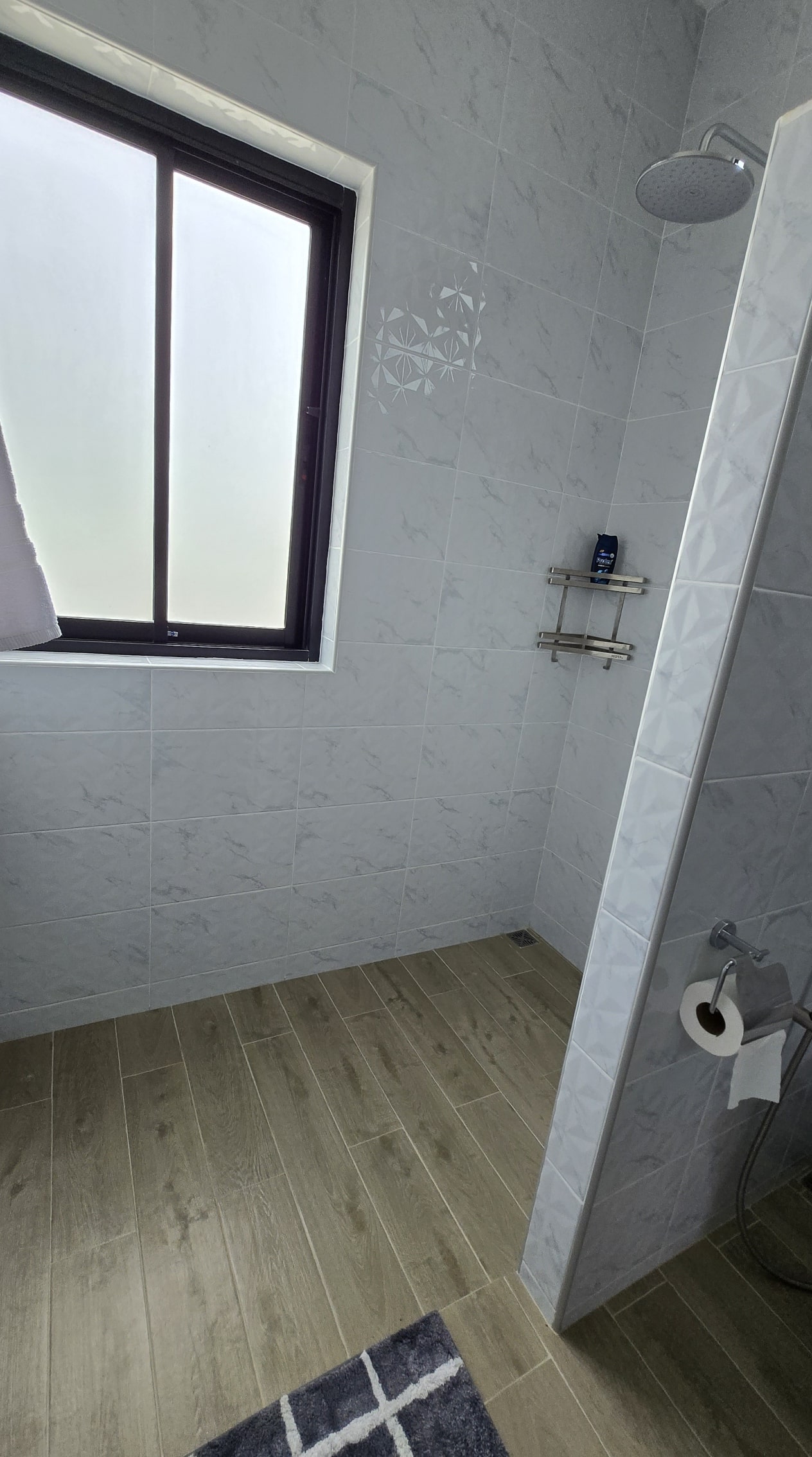 Das Haus hat ein Satteldach mit 50 mm PU-isoliertem Metall-Sheet und 15 cm dicken Gasbeton-Steinen (Q-Con). Dazu hochwertige Schiebefenster mit 6mm starkem, getönten Glas. Beim Bau dieses Hauses wurde auf Geräuschdämmung und Wärmeisolation geachtet, was ein angenehmes Raumklima garantiert.
