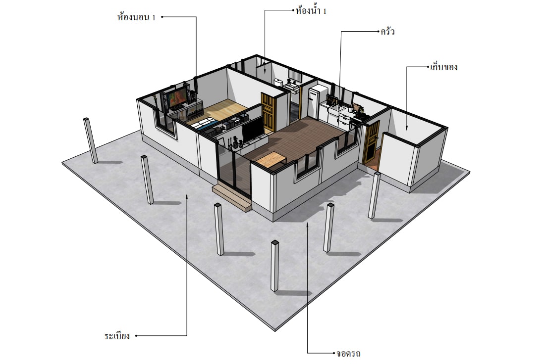 Ein schmuckes Ferienhaus mit einer grossen Wohnküche mit Indoor-Thaiküche, einem grosszügigen Badezimmer, einem Schlafzimmer und einer überdachten, knapp 40m2 grossen, Veranda.