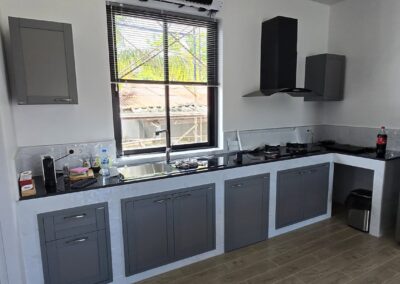 Alle diese Ausbauten – mit ausnahmen des Elektroverteilers mit Beckhoffsteuerung, dem Überlauf des Gebrauchwassers in die bestehende Kanalisation der Gemeinde, dem Termiten-Präventionssystem und der Installation der Dachkännel, sind im Kaufpreis von THB 1’580’000,- inklusive.