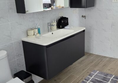 Die Wasserversorgung erfolgt über die Gemeinde und hat als Basis der Haus-Wasserversorgung einen 2’000 Litertank. Davor ist eine leistungsfähige Inverterpumpe mit Membrane für den Druckausgleich und Rückschlagventilen (Ausdehnung Heisswasser durch den Boiler) geschaltet. Warmwasser wird zentral über einen Boiler aufbereitet. Alle Armaturen sind aus hochwertiger Qualität.