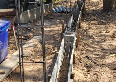 In Thailand sind Stützmauern ein zentrales Element, wenn Baugrundstücke aufgefüllt, an Hängen oder in der Nähe von Wasserflächen liegen. Sie verhindern das Abrutschen oder Ausspülen von Erde und sichern damit die Basis für das Fundament.