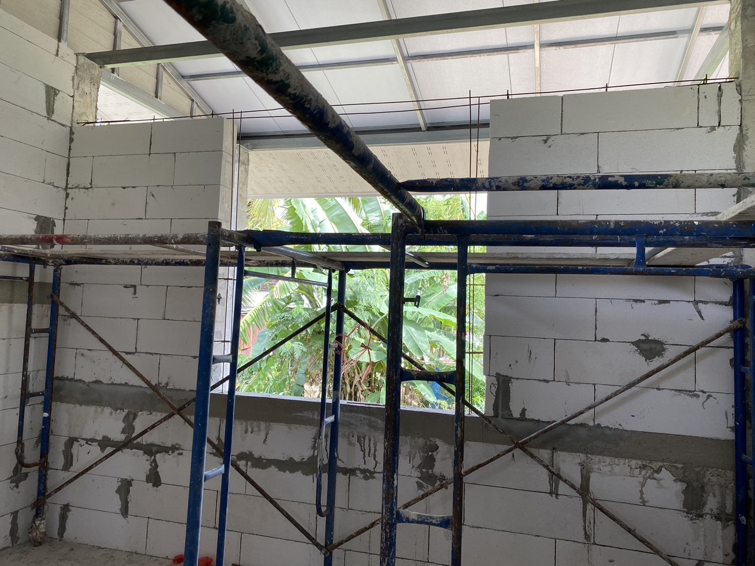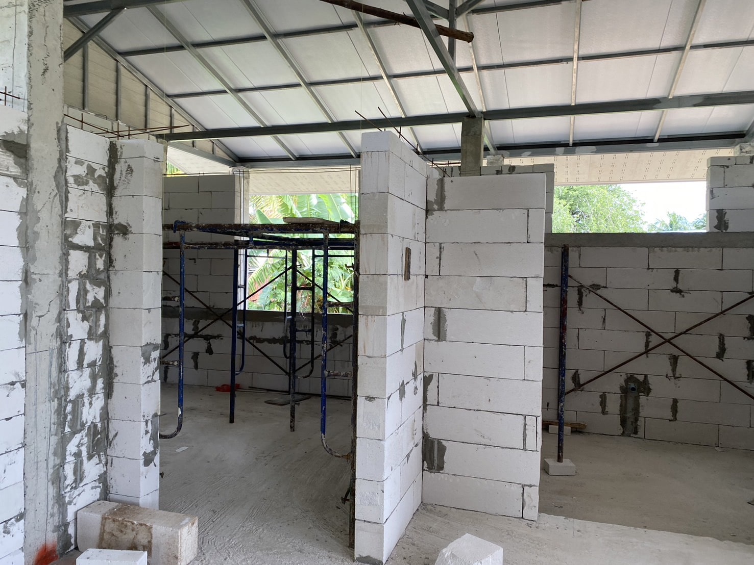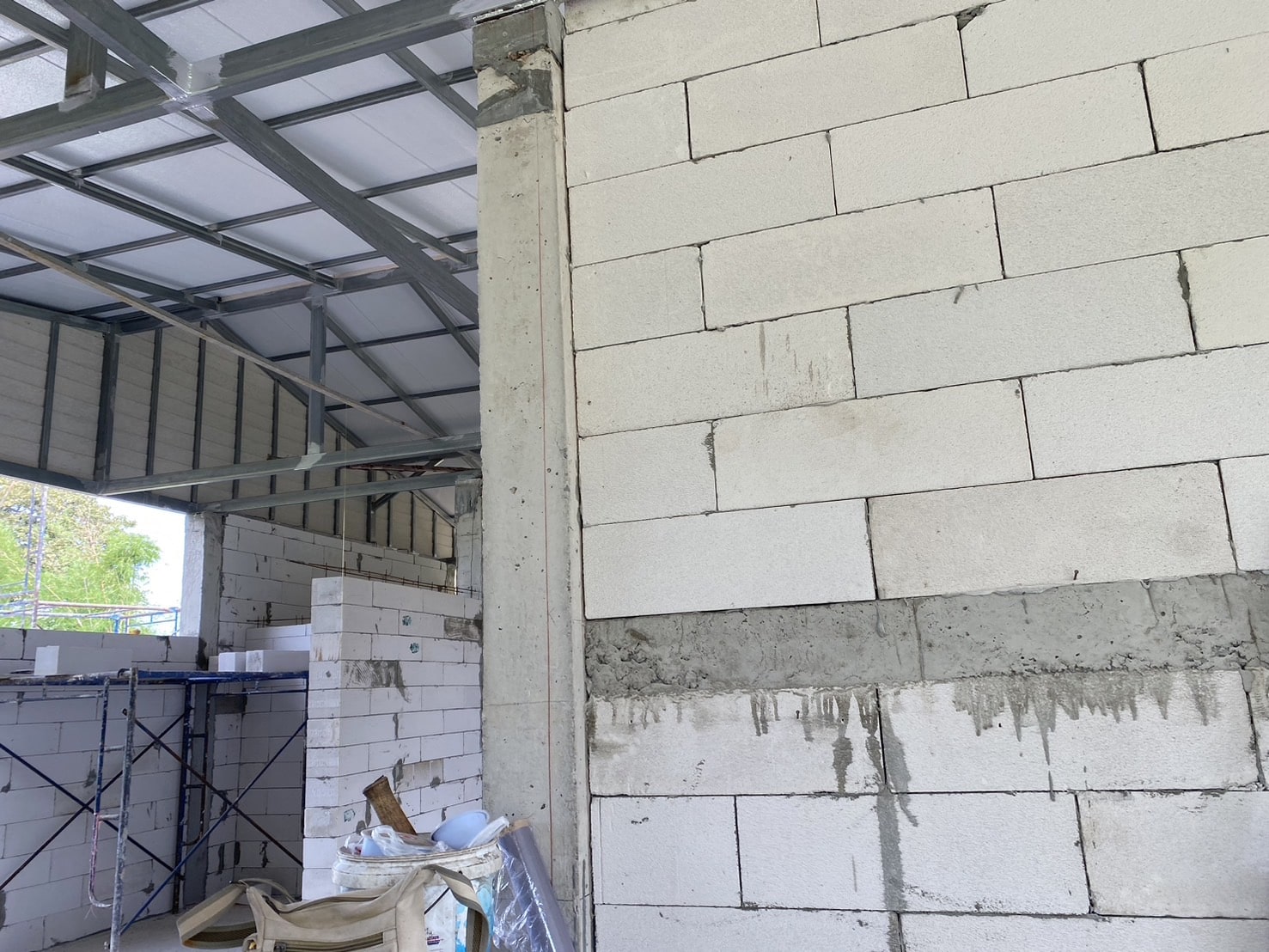 In Thailand werden Hauswände fast immer als Ausfachung in Stahlbetonrahmen gebaut: Betonstützen und Ringanker übernehmen die tragende Funktion, während das Mauerwerk nur füllt.